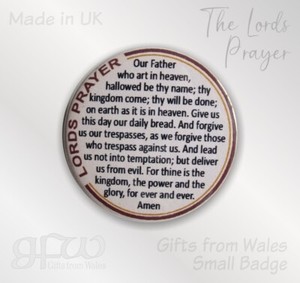The Lords Prayer - Mini Text on Small Badge - 25mm Diam.