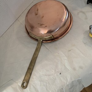 VINTAGE ITALY COPPER 10 SKILLET SAUTE FRY PAN 19.5 With Handle 2 3/4 Hammereded