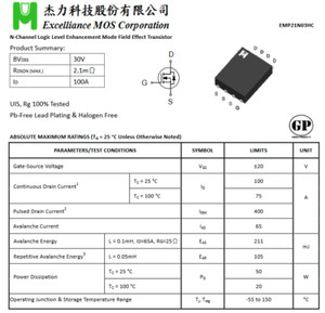 pk532 Mosfet EMP21N03H EMP21N03 P2I NO3 P21N03 P21 N03 EMP21N03HC EDFN5X6 IC