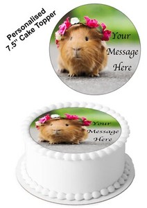 PERSONALISED Cake Topper Guinea Pig Pet Animal Edible Icing Decorati 7-8" Circle