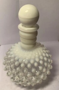 FENTON Moonglow Hobnail Opalescent Milk Glass Cologne Bottle Original Stop