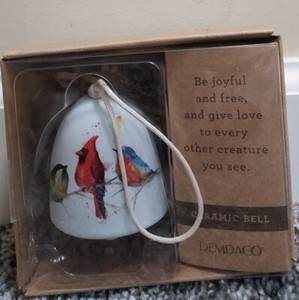 Red Cardinal with Birds 6 x 2.5 Stoneware Hanging Mini Inspired Bell Ornament