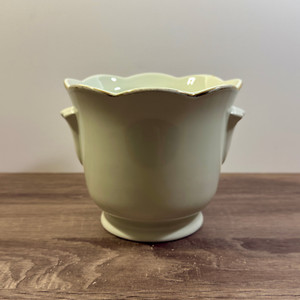 Vintage Green Planter Pot Coloroll Scalloped Edge Gold Trim England