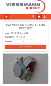 Viessmann Gas Valve GB-ND 055 E01-DG 19/26 G20 (Part No 7849853)