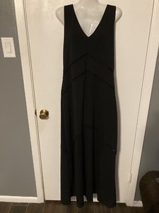 banana republic Black Soft Ponte maxi dress With ladder Lace Sz 14
