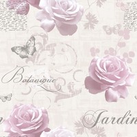 Pink / Silver - 127502 - Botanical Garden Rose Butterfly Script Muriva Wallpaper