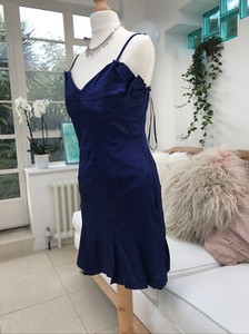 TFNC London Dark Blue Stretch Mesh Cut Out Back Fitted Dress S