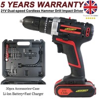 21V CORDLESS LITHIUM RECHARGEABLE COMBI HAMMER DRILL & FAST CHARGER 5YR WARRANTY