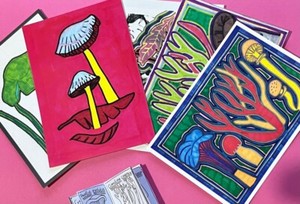 Art Postcard - A6 Size, Mushrooms, Small Outsider Print, Home Decor, Art Brut