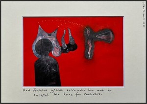 Original Painting by Mike Russell. Red Feminine Grace Surrounded Him...