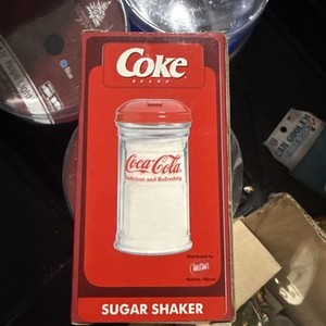 NOS Vintage 1992 COCA-COLA Glass SUGAR SHAKER JAR Red METAL LID Restaurant Style