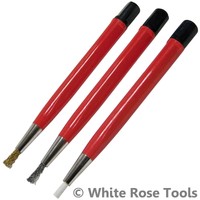 These cleaning brushes are useful for so many little jobs. The most useful is probably the glass fibre one, which is great for cleaning electrical contacts, but also for a whole lot of other little jobs. Always like to have a few lying around.
