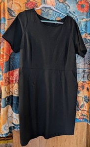 LANDS END Black Short Sleeves Sheath Dress w/ Slanted Pockets-18