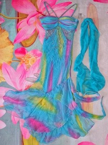 beautiful vintage y2k fairycore silk beaded dress turquoise rainbow