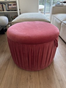 Pink Storage Ottoman Pouf Pouffe Round Stool