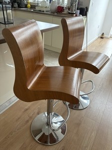 Tom Schneider Bar Stools Chair Seat X2 Brown Wood Metal Base
