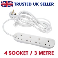 UK Extension Lead Cable 4 Socket 3 Metre Electric Mains Power Gang Way Plug