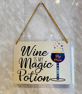 FUNNY WALL SIGN, Mdf Painted & Vinyl wall plaque 20cmx15cm, Wicca,MAGIC,WINE