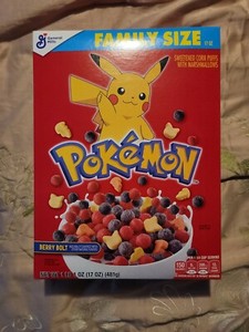 NEW GM FAMILY SIZE POKEMON BERRY BOLT FLAVORED CEREAL 17 OZ (481g) BOX CORN PUFF