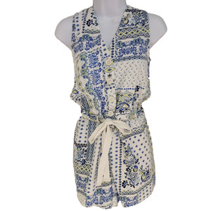 LOFT TEAL & BEIGE FLORAL PRINT FRONT BUTTON DOWN ROMPER JUMPSUIT SIZE: 2 NWT