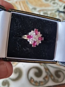 9ct gold engagement ring , Ruby and diamond size O