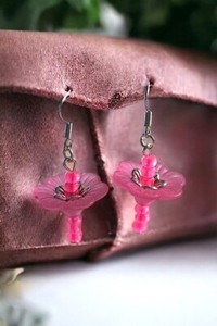 HANDMADE - Hot Neon Pink Dangle Flower Earrings