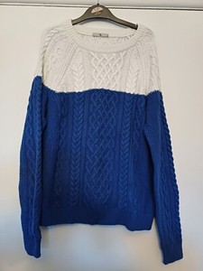 Ladies Blue & White Chunky Knit Jumper. Size 12