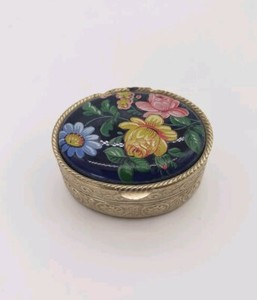 Vintage Small pill ring trinket Porcelain Silver Plated Art Deco hinged Box
