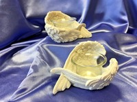 A Set of Two White Votive Tealight Holders in Angel's Wings