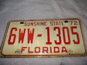 1972 FLORIDA LICENSE PLATE PALM BEACH COUNTY