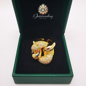 Genuine White Huge Baroque Pearl & Crystal Ring 18k Gold Plated Adjustable Size