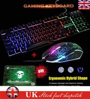 T6 Rainbow Back light USB Ergonomic Gaming Keyboard + 2400DPI Mouse + Pad UK
