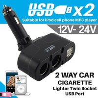2 Way DC Car Cigarette Lighter Adapter Suitable For ipad cell phone Mp3 Player