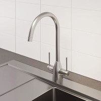 Modern Mono Kitchen Sink Mixer Tap Brushed Nickel Twin Lever Swivel Spout Faucet