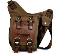 Men's Canvas Leather Shoulder Military Messenger Sling school Travel Hiking Bag