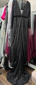 Black sequin dress, fitted with train, thigh split, formal/prom/wedding 12/14