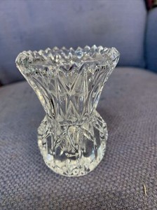 Vintage Crystal Cut Glass Small Toothpick Holder Scalloped Edge