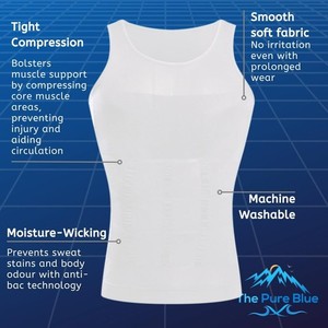 MENS SLIMMING VEST Body Shaper Slim Belly Waist Boobs Compression T-Shirt Large