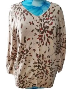 JAEGER Wool Mix CASHMERE & ANGORA Button up Cardigan Animal Print Medium 12 uk