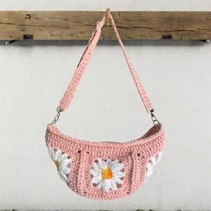 Pink flower Bohemian Granny Square Crochet Bum Bag Sling Bag Fanny Bag Crossbody
