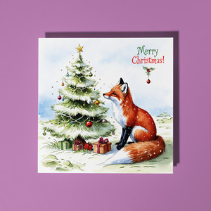 Handmade Beautiful fox with gifts Merry Christmas Card With White Envelope.