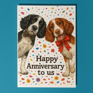 Spaniel Dogs - Happy Anniversary Card Personalised Card and Envelope - Couples