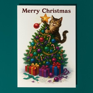 Holiday Cat - Calm Christmas - Merry Christmas Card Envelope Personalised card.
