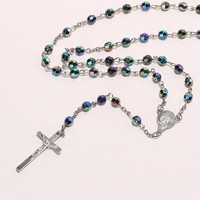 Beads Rosary Multi-Color Religious Christ Cross Necklace Women Sweater Chain
