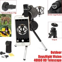 The down side is that the outside material of the product smells, so I covered mine with duct tape, and the tripod is definitely better than those cheap flexible tripod that come with small cameras but I still want a bit better one. Also the clip to add the phone camera didn't work great with my LG smart phone (what worked better was just to hold the phone camera up to the monocular.