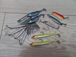 11 x Sea fishing Lures - Storm, Sidewinder & FFT Silver Stinger, Bass Pollack