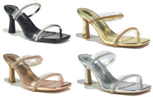 Womens Ladies Diamante Mid Block Heel Evening Party Wedding Bridal Sandal Shoes