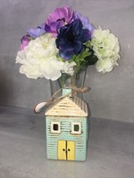 Blue cottage tea light holder