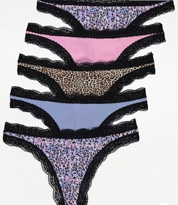 Animal Print Lace Trim Brazilian Knickers 5 Pack, Size 16 ( NEW)