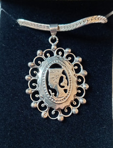 Sterling Silver 925 Vintage Necklace And Pendant of Queen Nefertiti, thick chain
